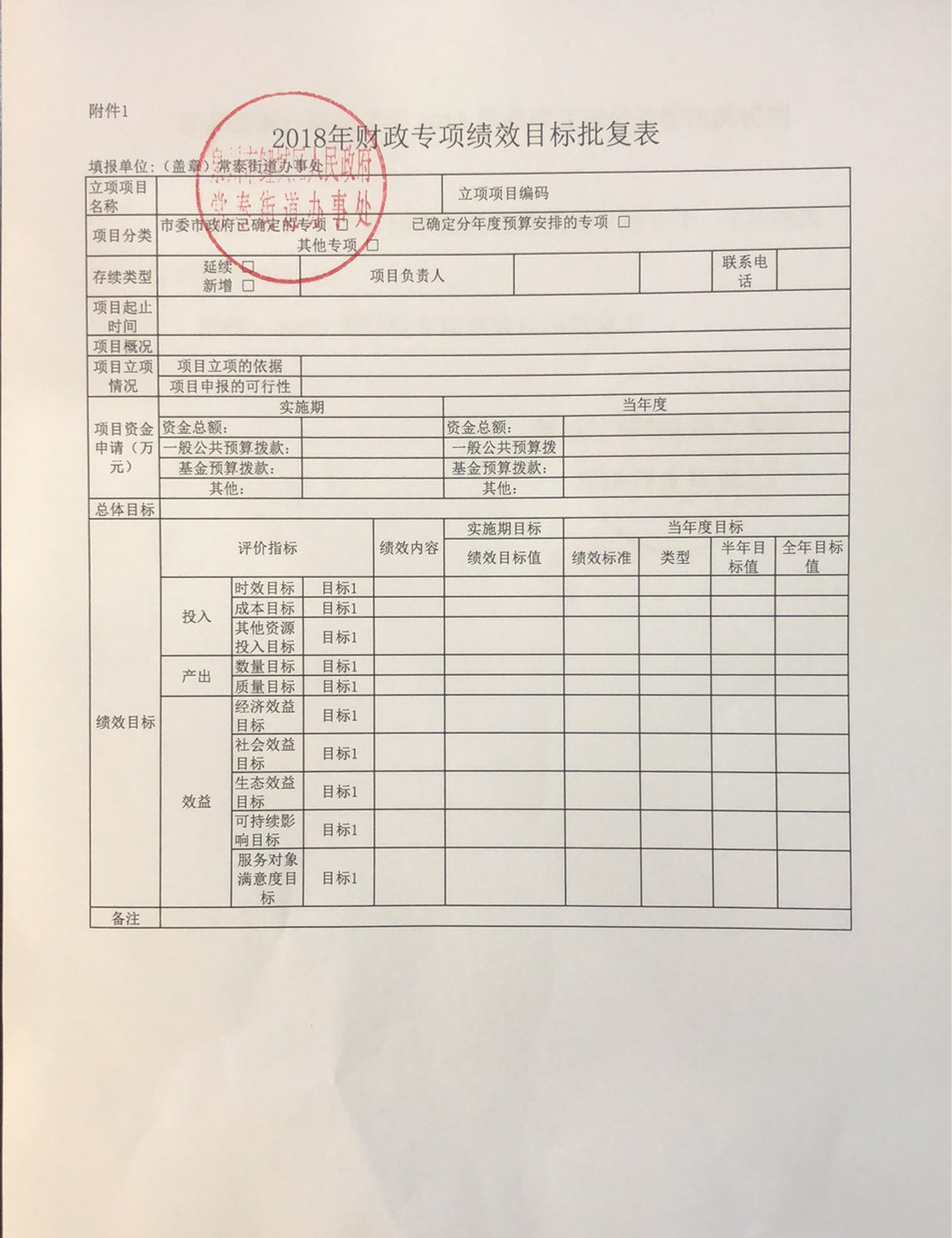 常泰街道办事处关于2018年绩效目标公开情况的说明